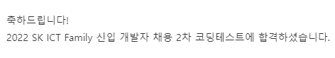 2022 SK ICT FAMILY 2차 코딩테스트 후기기타문서 2022. 4. 19. 00:54반응형