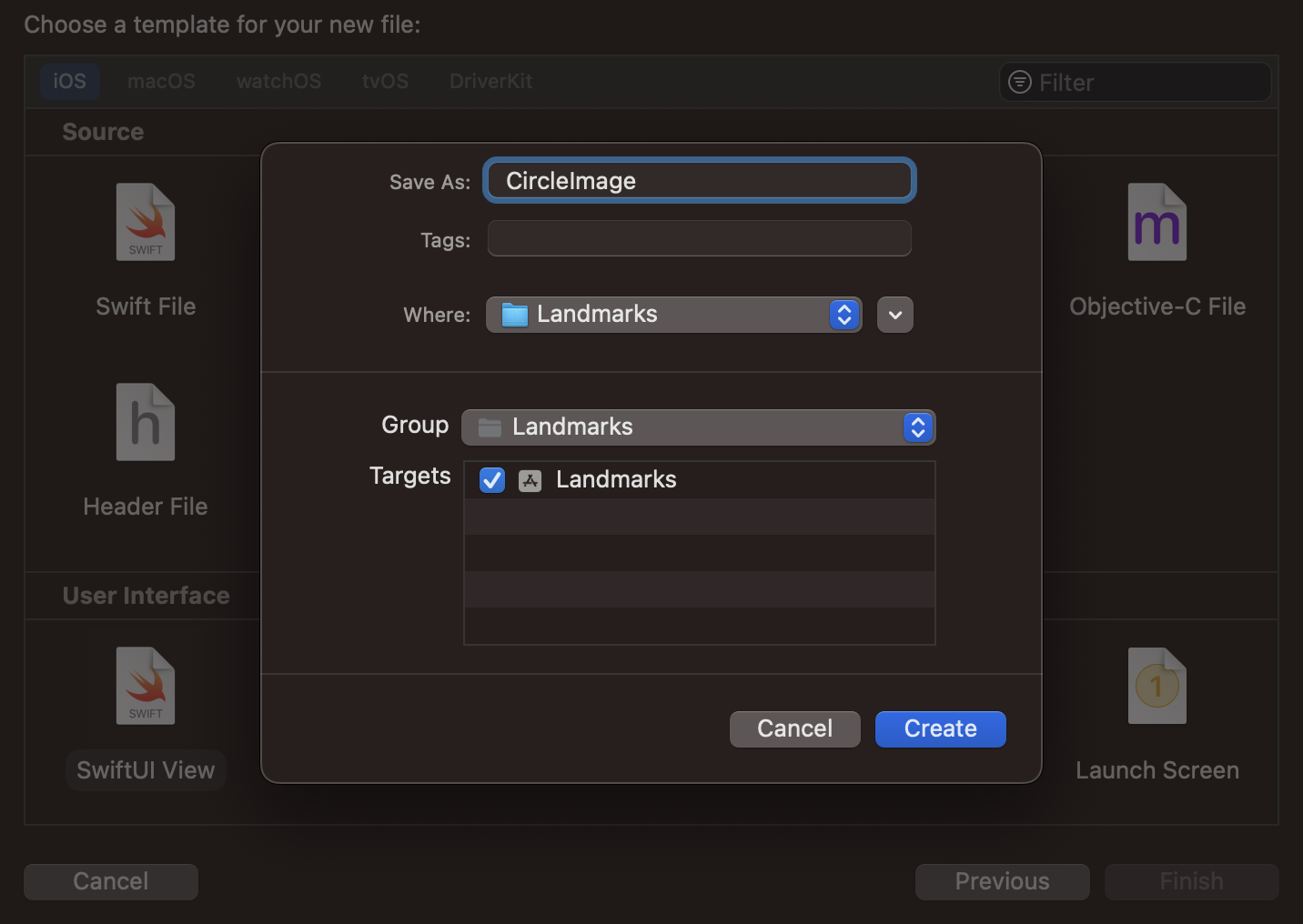 이미지를 추가해보자. 먼저 SwiftUI View 파일을 새로 만들자. 이름은 CircleImage.swift